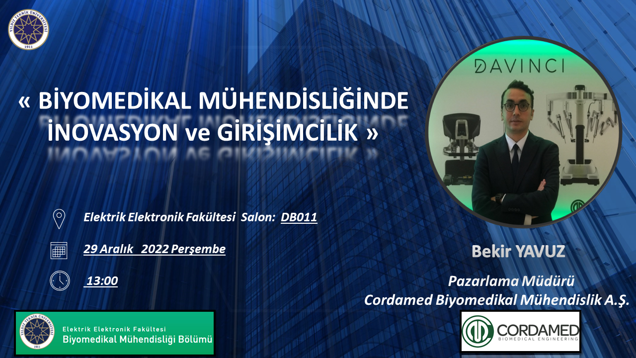 Seminerler, Biyomedikal Mühendisliğine Giriş dersi kapsamında yapılacaktır.